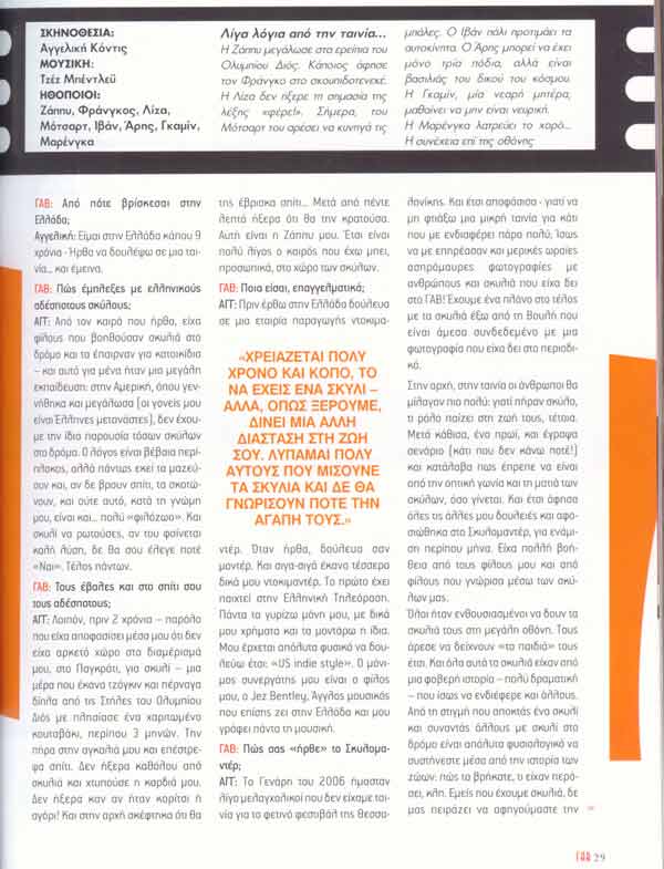 - Excerpts, TV STATION ANT1's "Morning Coffee" show & screenings at Nea Philadelphia schools, OCT 4, 2006, world animal day.