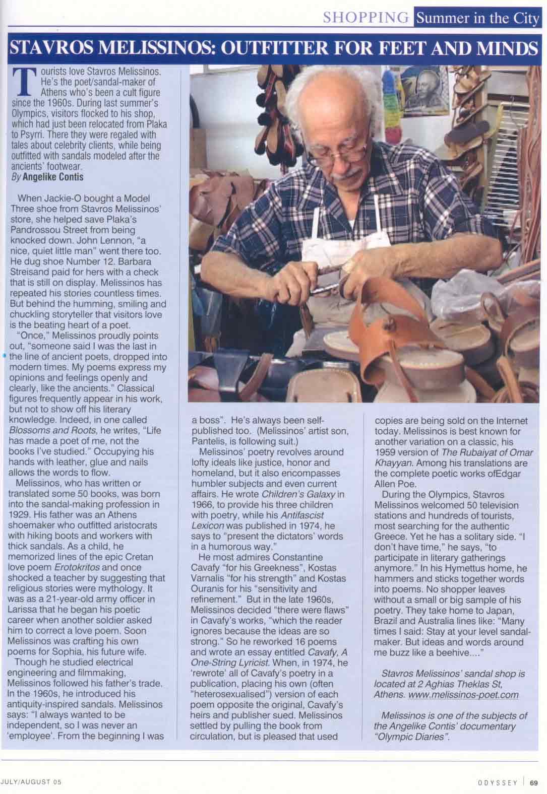 The poet Stavros Melissinos talking to a Brazilian journalist in his workshop in Plaka, Athens.